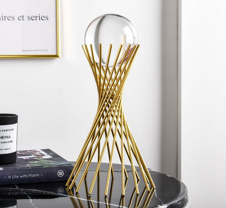 🔮 Essas Estatuetas Douradas com Esferas de Cristal possuem um toque de magia que transcende o tempo e o espaço. As esferas de cristal reluzentes irradiam elegância e sofisticação, conferindo ao seu ambiente uma aura de encantamento e requinte, como verdadeiros tesouros guardados.