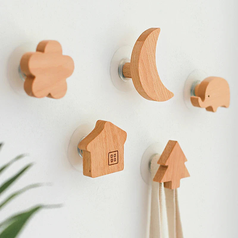 Ganchos de Parede Animal de Madeira – Encanto e Funcionalidade para o Quarto Infantil
